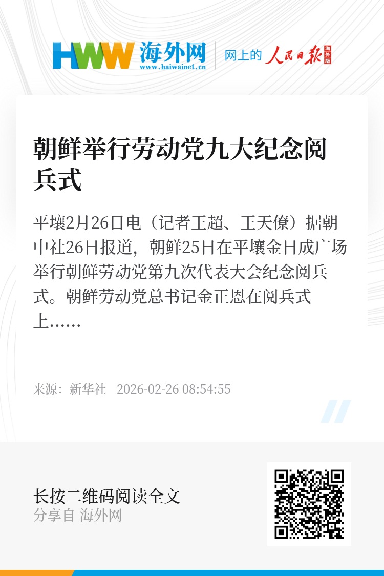 新华社平壤2月26日电(记者王超、王天僚)据朝中社26日报道,朝鲜25日在平壤金日成广场举行朝鲜劳动党第九次代表大会纪念阅兵式。